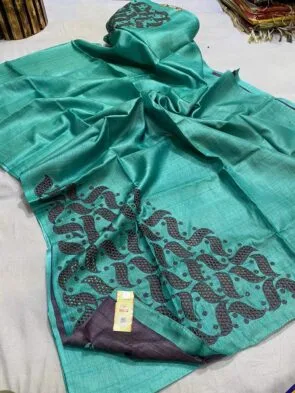 We offer you the best handloom ghicha tussar silk sarees made of pure silk. This is a pure tussar ghicha silk saree with a beautiful screen print and silk mark certified saree. It is a handmade saree weaved by handloom. It is easy to wear and a very soft silk saree.